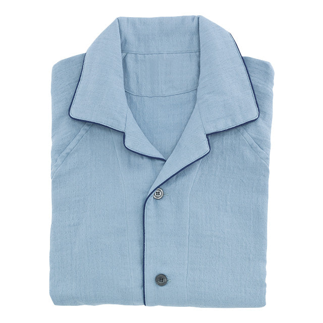 パジャマの生地は、UCHINO開発の“マシュマロガーゼ”。まるでマシュマロのように軽くて柔らかな肌触りのガーゼ生地です。また、縫い目の少ない縫製で、生地の特長が活かされた優しい肌触りを実現。素材そのものの軽さに加え、腕を動かしやすいラグラン袖を採用したことで、寝返りもとてもスムーズです。