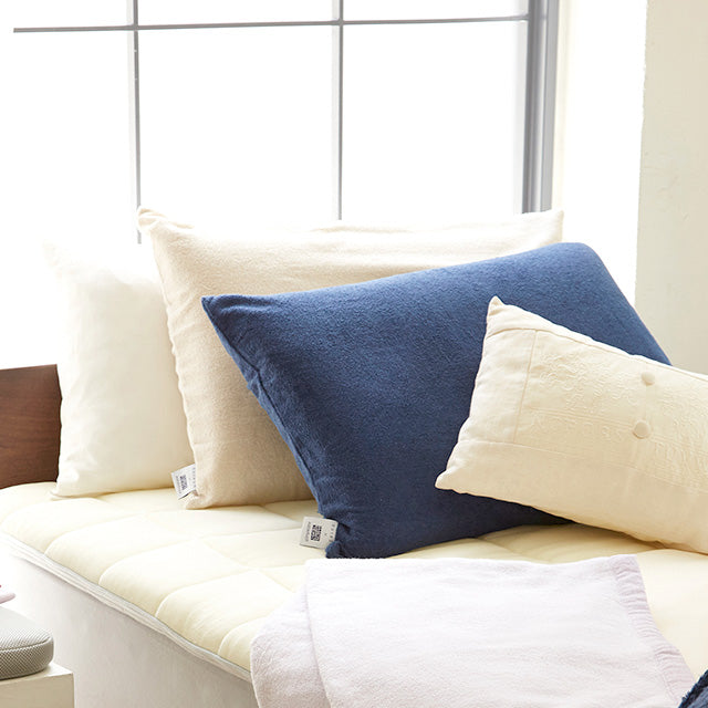 UCHINO の特許素材“エアリーフィール”を採用したピローケースです。 羽毛のような柔らかい肌触りで心地よく、吸水性の高さと乾きやすさが特長です。綿100%のタオル地で、季節を問わずいつでも快適にお休みいただけます。 エアウィーヴ ピロー スタンダード/ ソフト、エアウィーヴ ピロー S-LINE 全てにお使いいただけます。