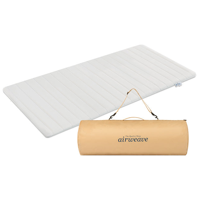 肩柔機能搭載で寝返りがしやすい。気軽に持ち運び、日常生活のいろいろな場面で使える携帯用エアウィーヴです。ベッドマットレスやお布団の上に1枚重ねるだけで、外出先でもエアウィーヴの寝心地を楽しむことができます。